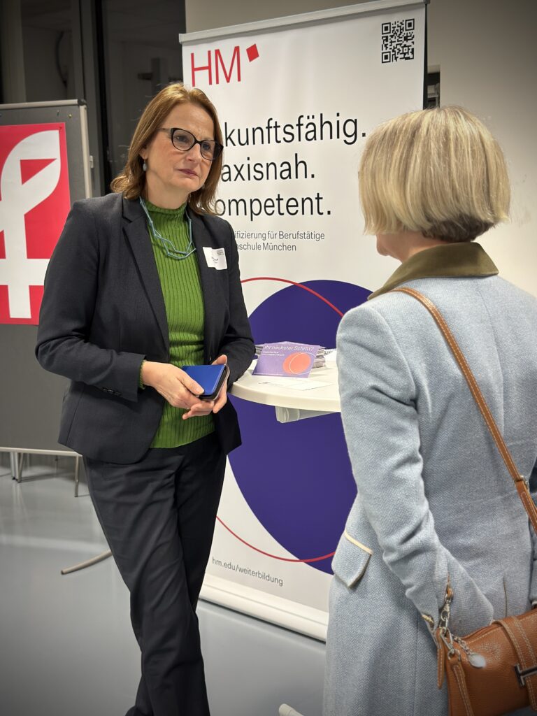 Bedanken möchten wir uns auch für die warme Begrüßung der gastgebenden Hochschule München durch Prof. Dr. Silke Järvenpää, Wissenschaftliche Leitung des Weiterbildungszentrums, den Einblick in den berufsbegleitenden MBA von Prof. Dr. Christina Rothhaar und an die Moderatoren Prof. Dr. Thomas Geiß und Janika Zelmer (BayZiel).